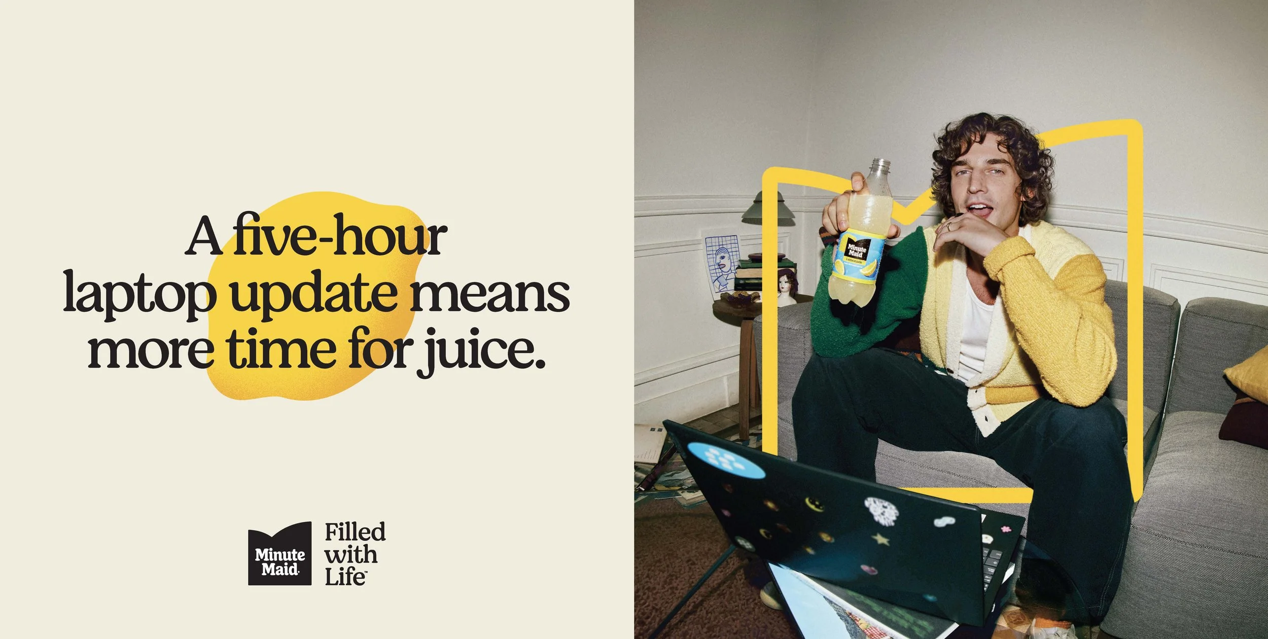 The juice category has been in a sea of sameness for a long time. Families, farms, and families on farms. Our mission: In a world dulled by routine, we’ll be a beacon of vitality, passing out vibe shifts 😎 with every interaction, and making people's dullest routine moments brighter.